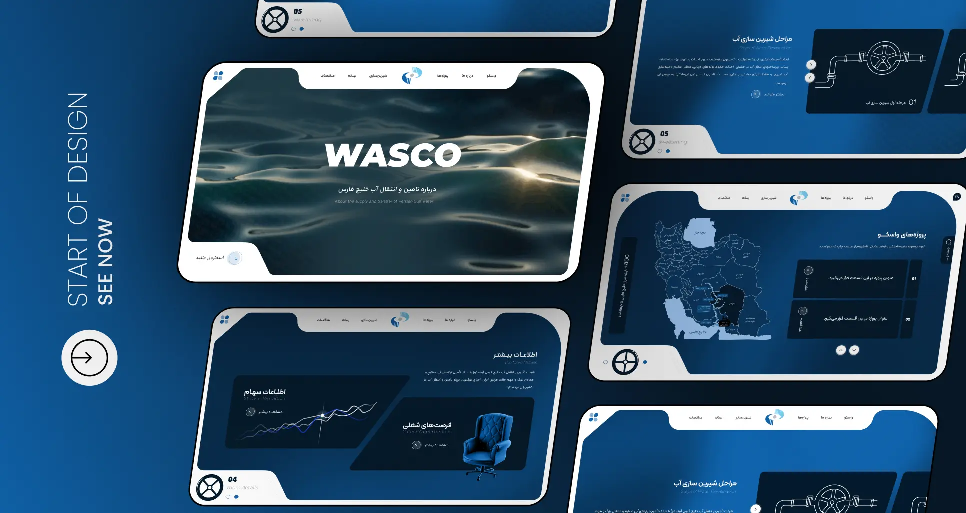 ساختار طراحی واسکو بر پایه مقیاس و دقت شکل گرفته است؛ از نقشههای تعاملی مسیر انتقال آب گرفته تا بخش معرفی پروژهها، همهچیز برای نمایش شفاف وسعت و عمق فعالیتهای شرکت طراحی شده است. هویت بصری صنعتی، تایپوگرافی قوی و رنگبندی الهامگرفته از آب و خاک فلات مرکزی، فضایی رسمی، استوار و در عین حال زنده را ایجاد کرده است.
